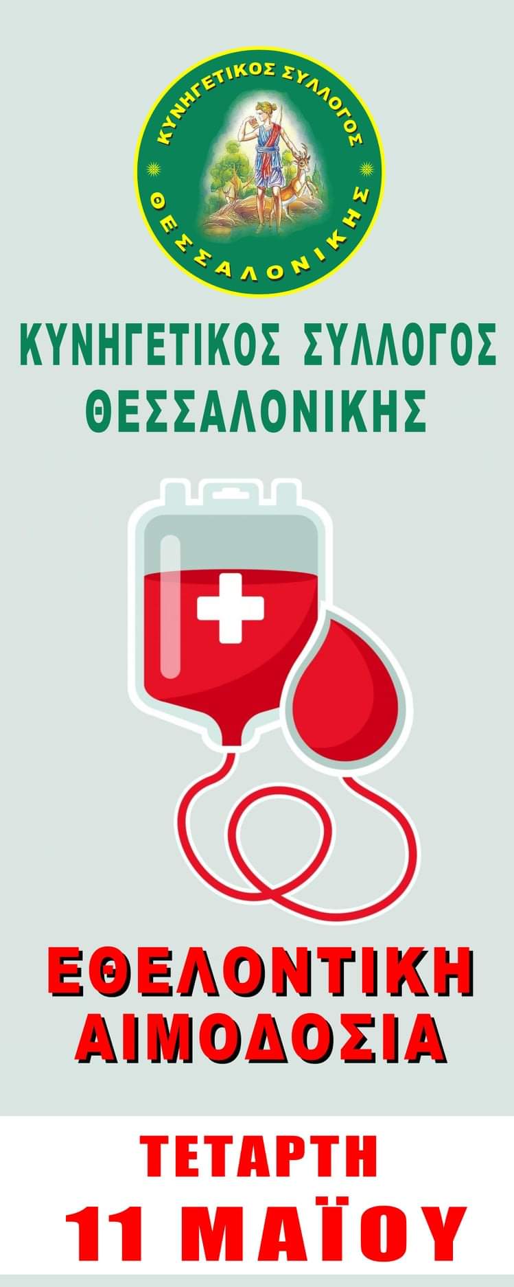 ΑΙΜΟΔΟΣΙΑ - ΤΕΤΑΡΤΗ 11 ΜΑΙΟΥ 2022 ΣΤΗ ΛΕΣΧΗ ΚΥΝΗΓΩΝ ΠΟΛΙΧΝΗΣ- ΜΕΤΕΩΡΩΝ. ΩΡΑ 16:30 MM- 19:30 MM